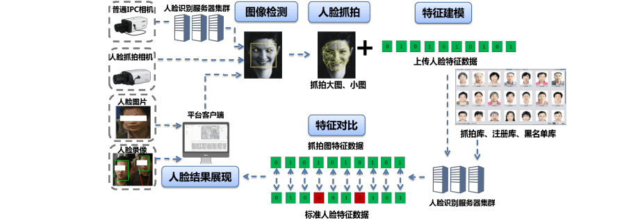 系统基于人脸识别核心技术,遵循公安行业信息化标准规范,依托综合可靠的通信网络、分布式数据库和集群计算等多项技术,充分考虑系统安全性、可靠性、可扩展性,可广泛应用于公共安全各业务领域的人脸比对综合应用平台,能有效地协助对不法人员的鉴别、抓捕和布控,保护国家安全和社会稳定。