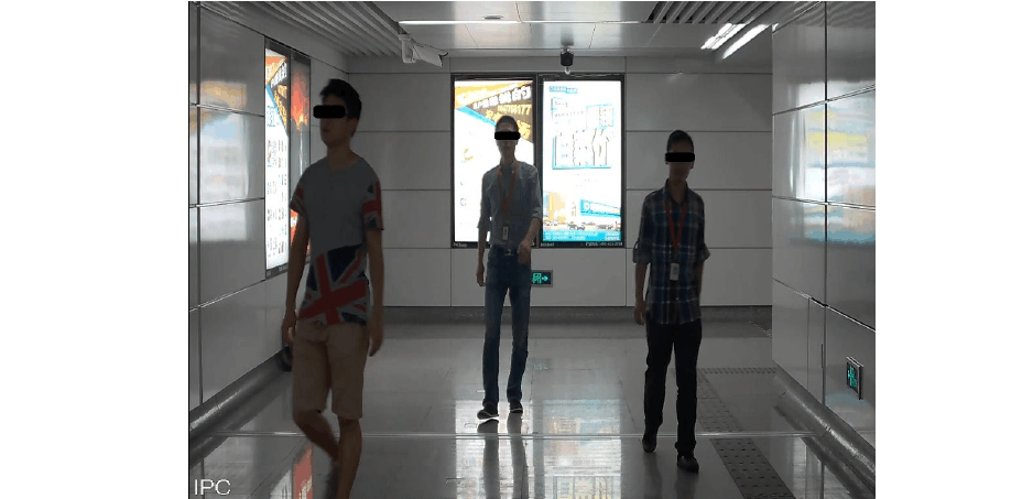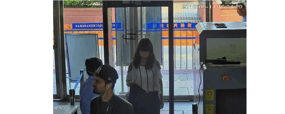 (抓拍人脸监控场景示例图)  不推荐场景:背景背光严重,安检通道直接设置在进门口,形成强宽动态场景,此场景人脸抓拍效果较差(每天不同时间段光线变化明显,抓拍效果也有较大差别):