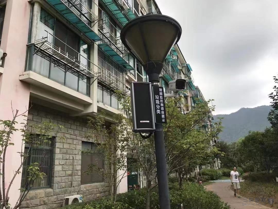 在小区集中垃圾投放点附近安装海康威视智能警戒摄像机,快速识别到进入抛投区域的人员,进行温馨的声音提醒。