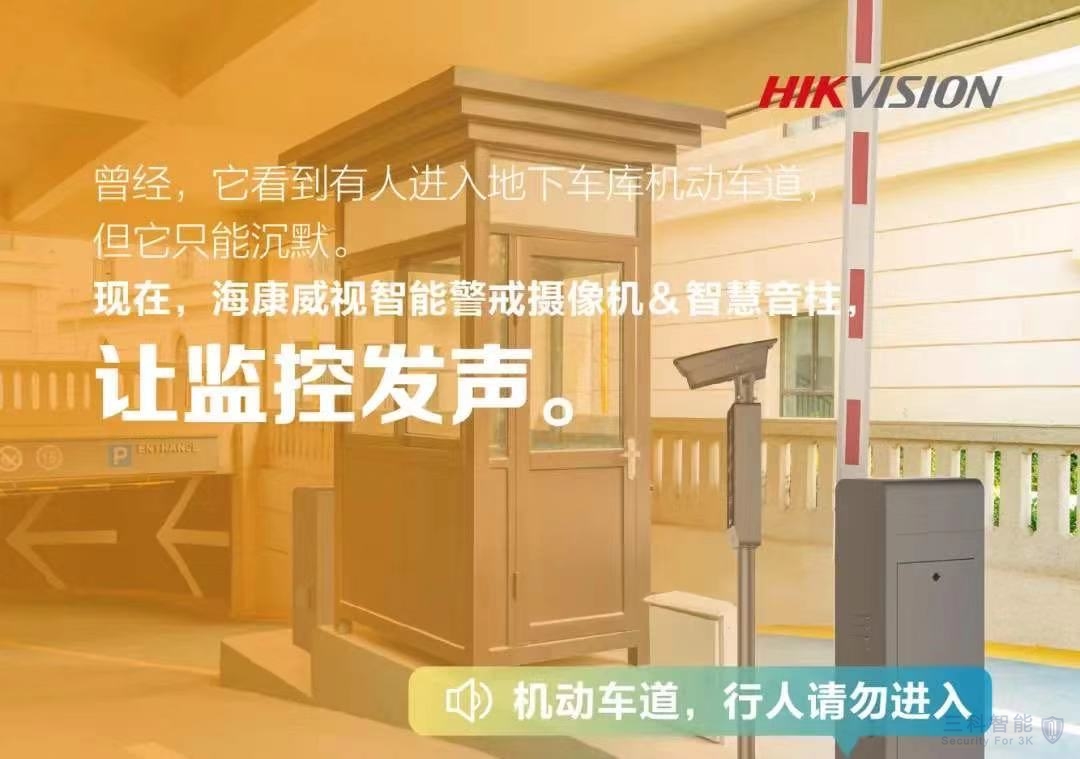 在小区地下车库车辆出入口安装海康威视智能警戒摄像机,声光报警,提醒居民远离,减少危险发生。